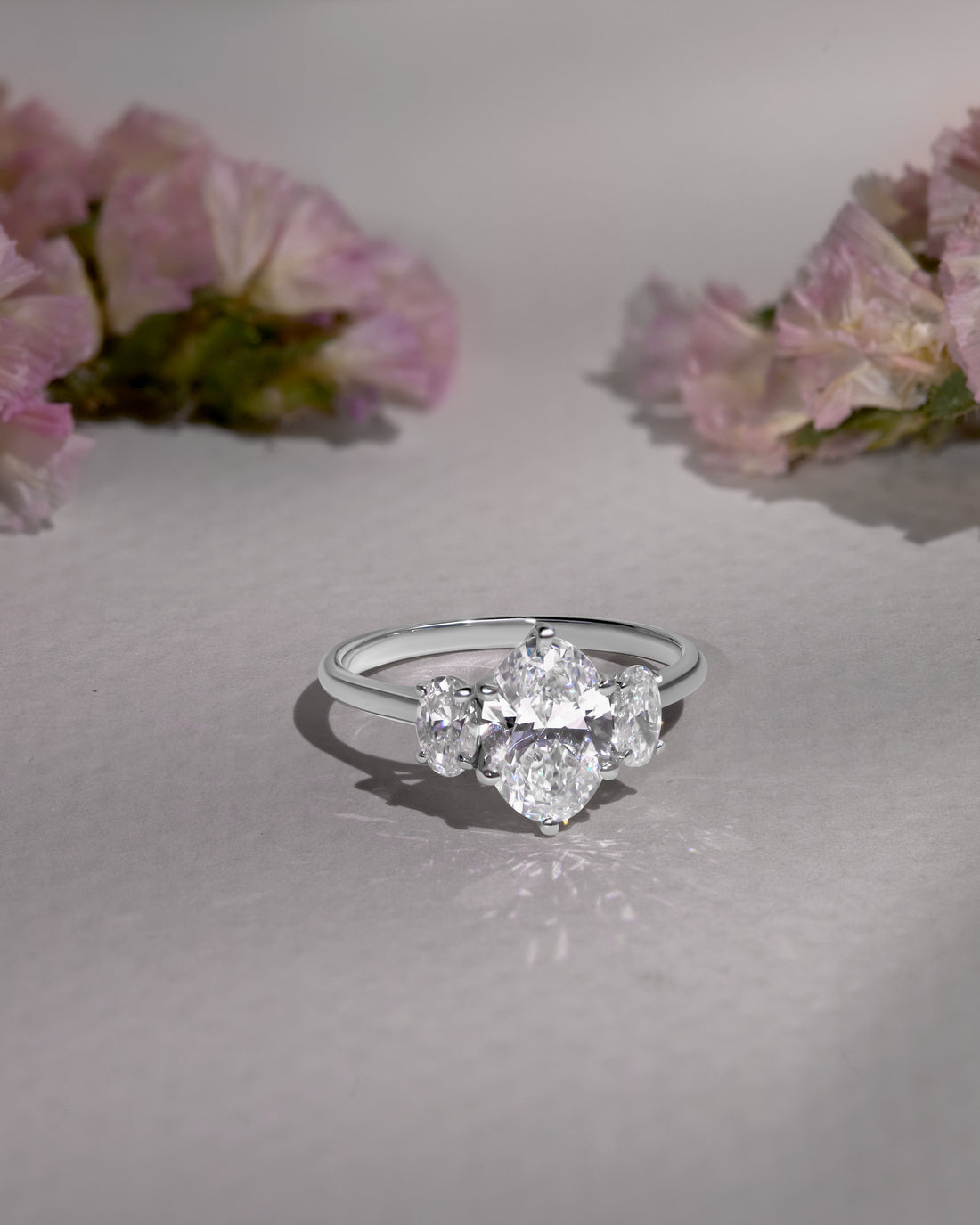خاتم فاخر بقصّة بيضاوية و مرصع بألماستين بيضاويتين ، من الألماس المصنع بالمختبرات بجودة مطابقة ...